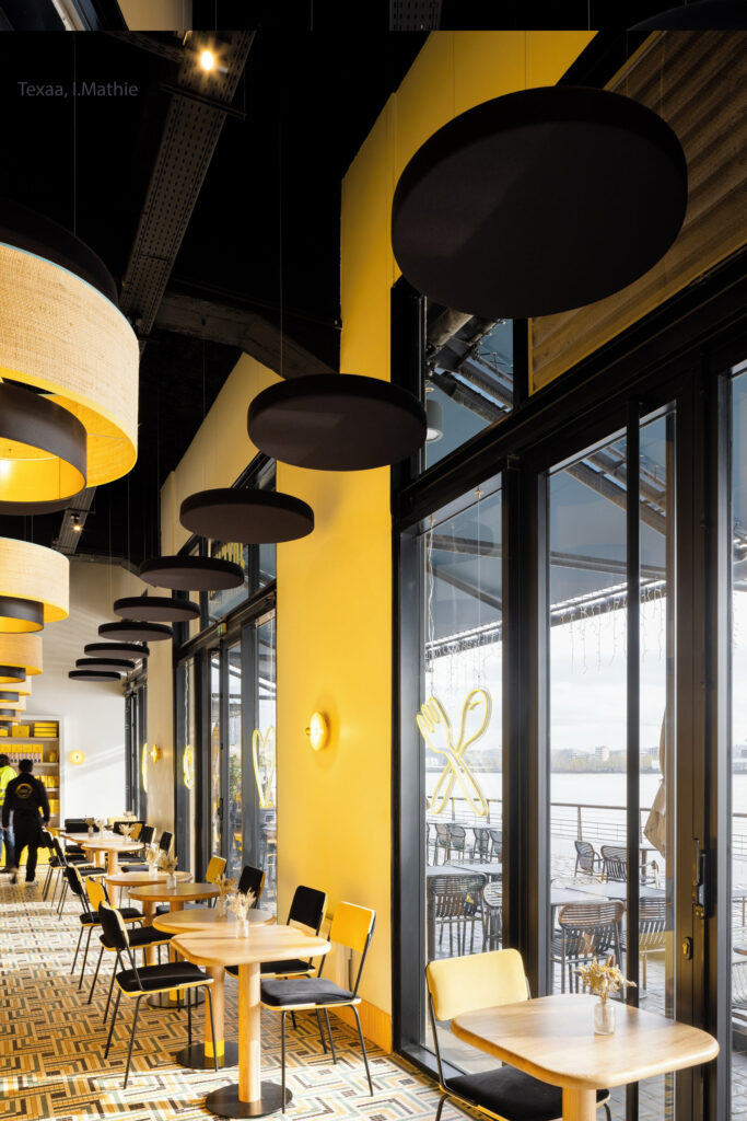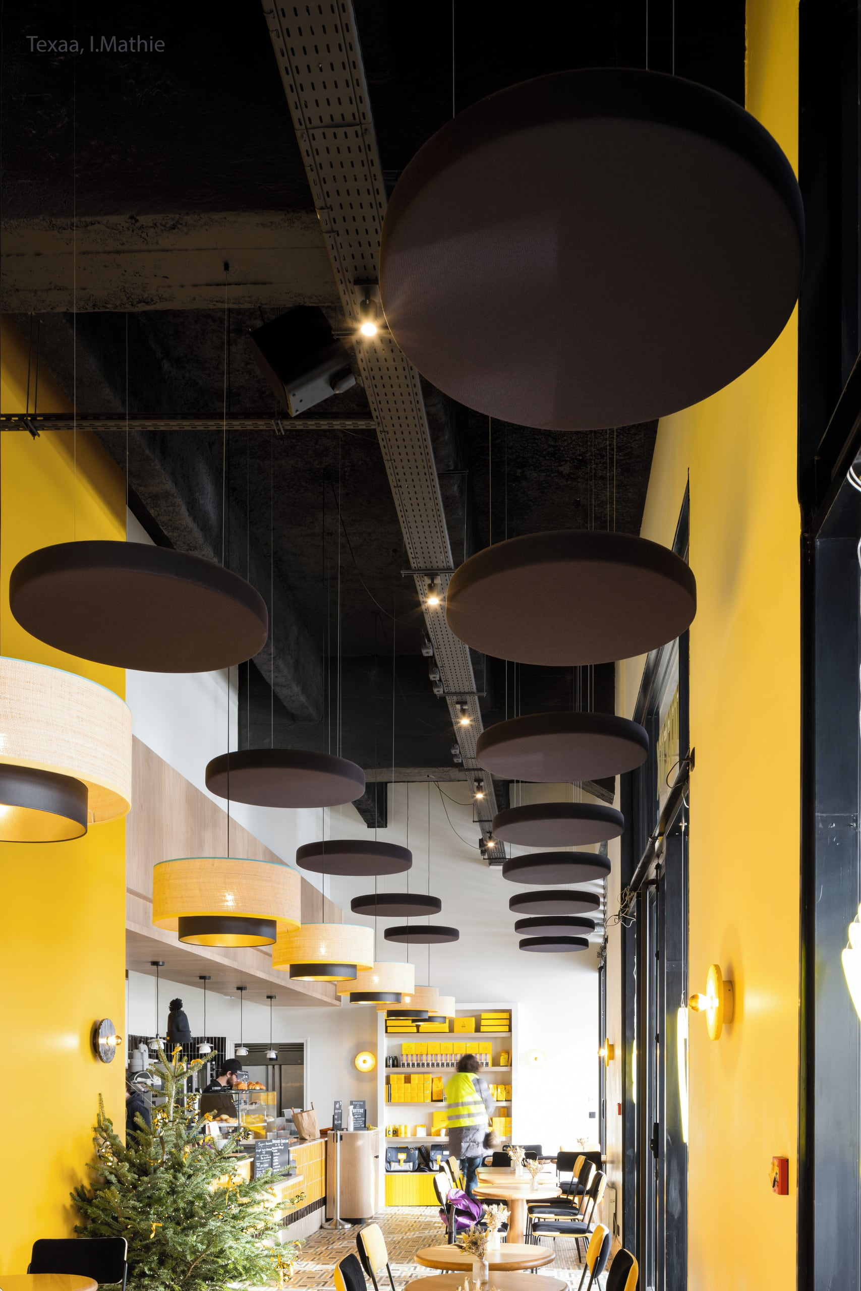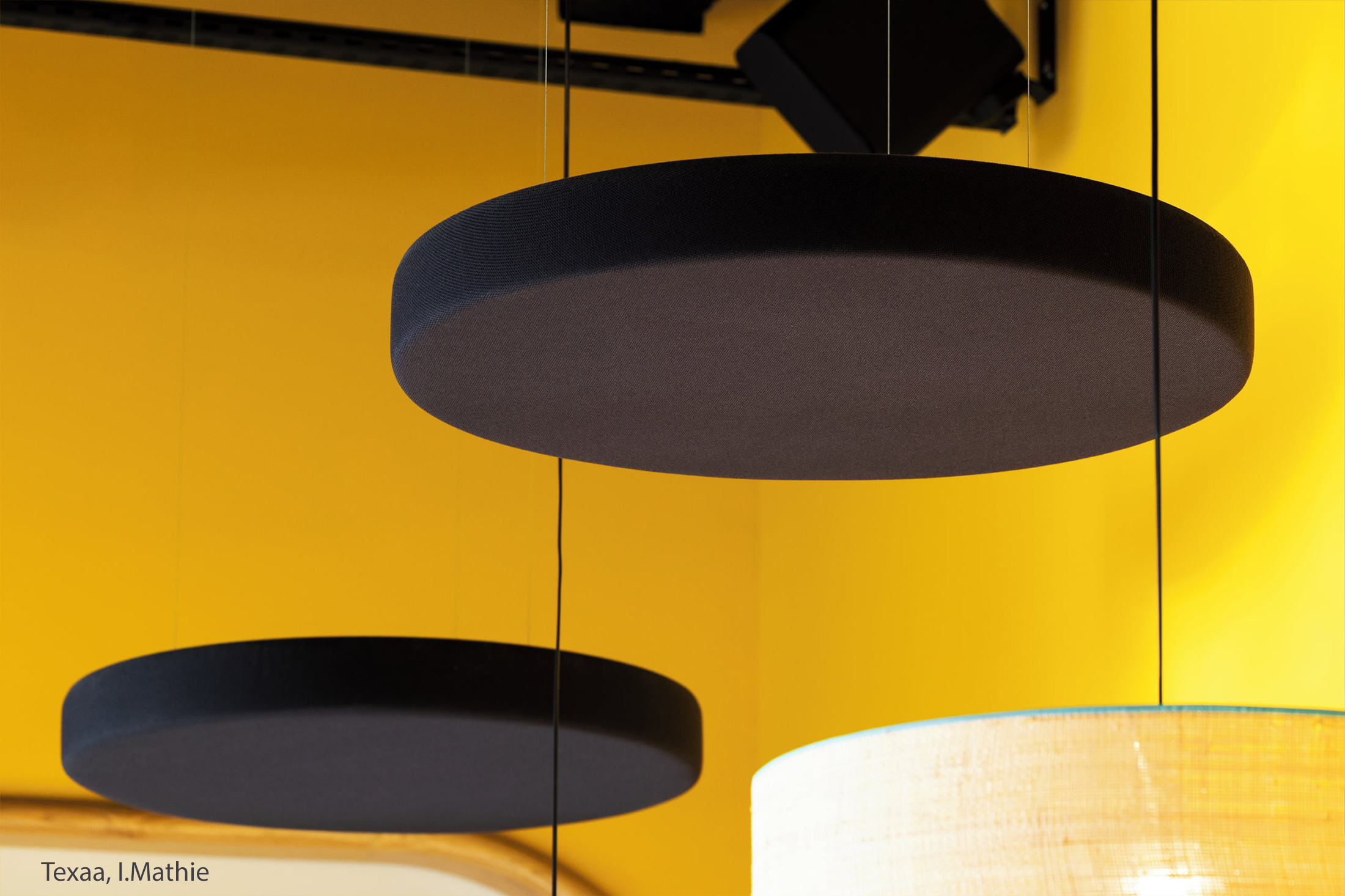 Inspiratievoorbeeld van Texaa Abso Cushion ophangelementen in een ruimte met een hoog plafond.
