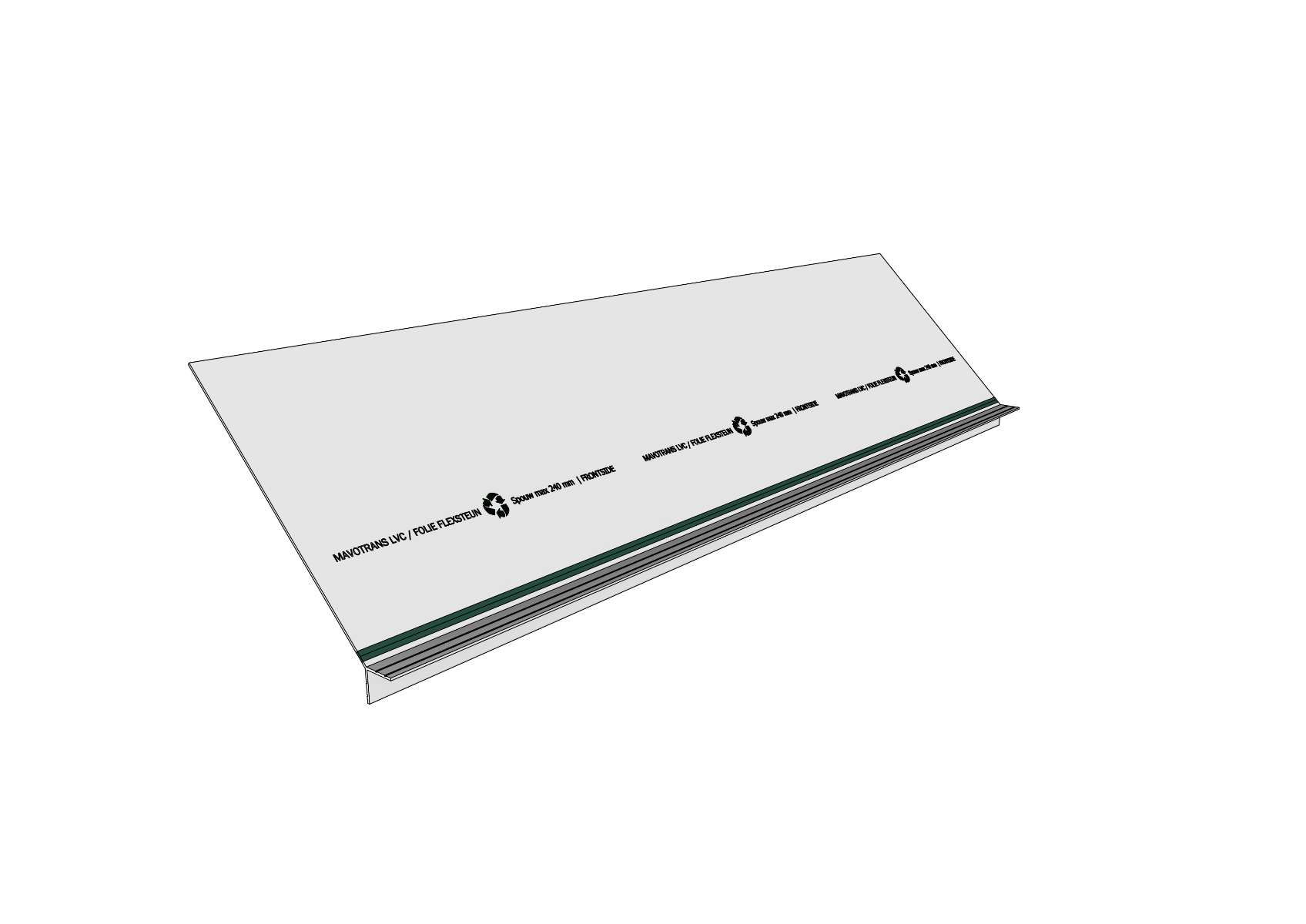 De Mavotrans LVC/Folie Flexsteun bestaat uit een vlakke gerecyclede kunststof plaat met een geïntegreerd hoekprofiel, duurzaam verbonden met een flexibele strook voor optimale verwerkbaarheid en prestaties.